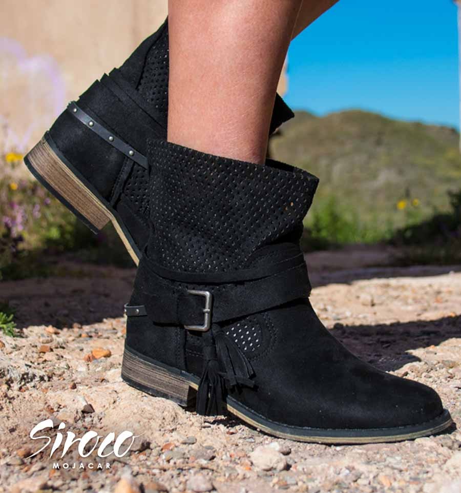 Regresan las botas camperas, adaptadas a la nueva temporada. El modelo de botines negros Michigan es todo un clásico, que podrás usar cada día con diferentes outfits. Botas cómodas con caña troquelada y accesorios fijos: correa con hebilla, correa con tachuelas y borlas.