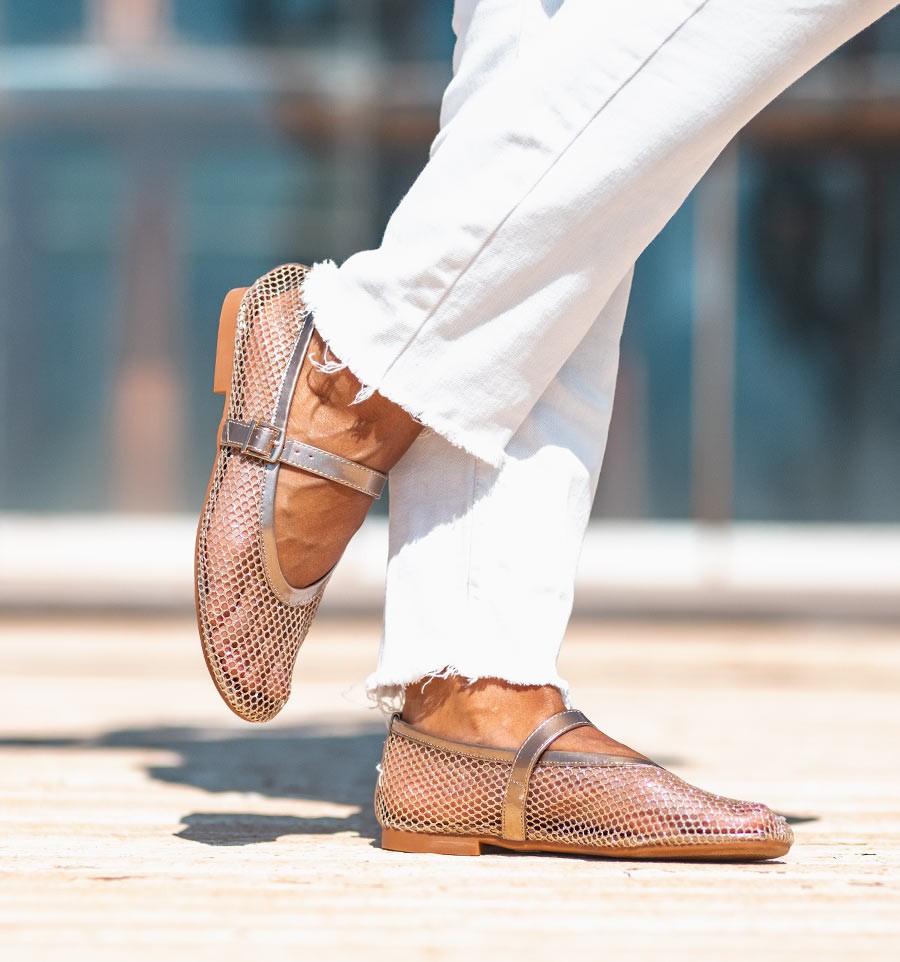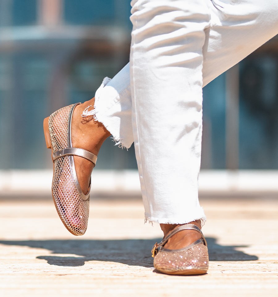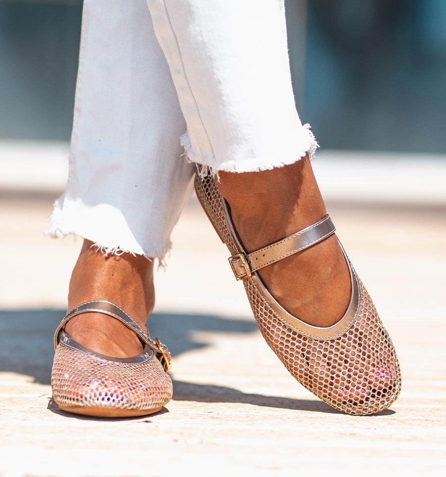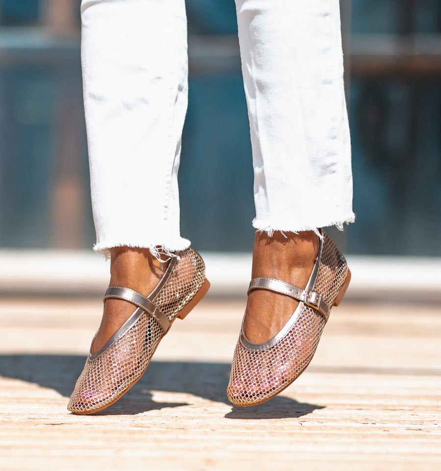 Bailarinas mess en color dorado. Las clásicas merdecitas se reinventan siguiendo las tendencias actuales de la moda para que tu verano sea perfecto. ANIMAL FREE.