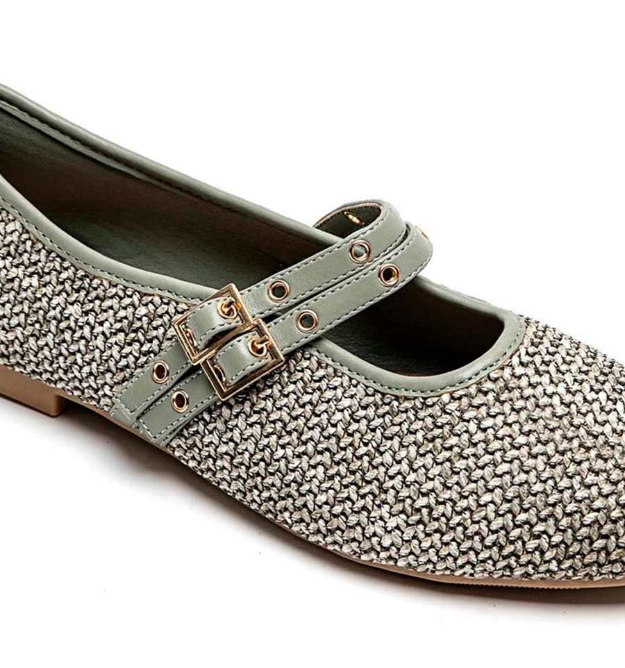 Bailarinas en material textil con textura en color verde y originales tiras en el empeine. Las clásicas manoletinas se reinventan siguiendo las tendencias actuales de la moda para todos tus estilismos. Estrena las últimas tendencias en merceditas de mujer, acolchadas y suela antideslizante. ANIMAL FREE.