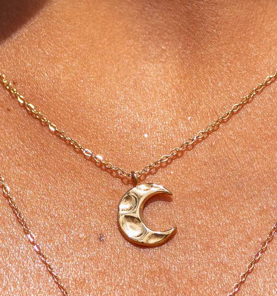 Original and simple necklace with 2 combined chains and sun and moon ornaments.