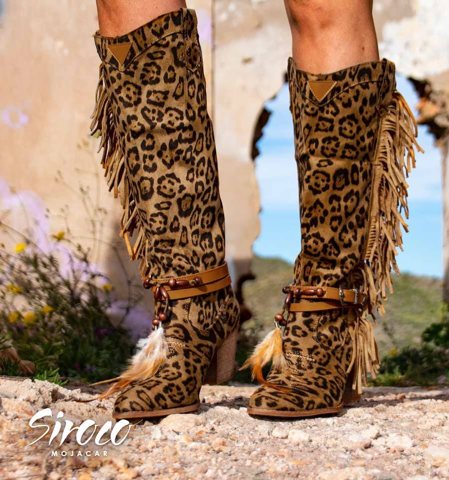 For this spring more boots with fringes! ... because all boho look should carry this complement. In addition, the Columbia model has other optional accessories strap with feathers and animal print strip. Choose your high-heeled boots, with high top because ... fly!