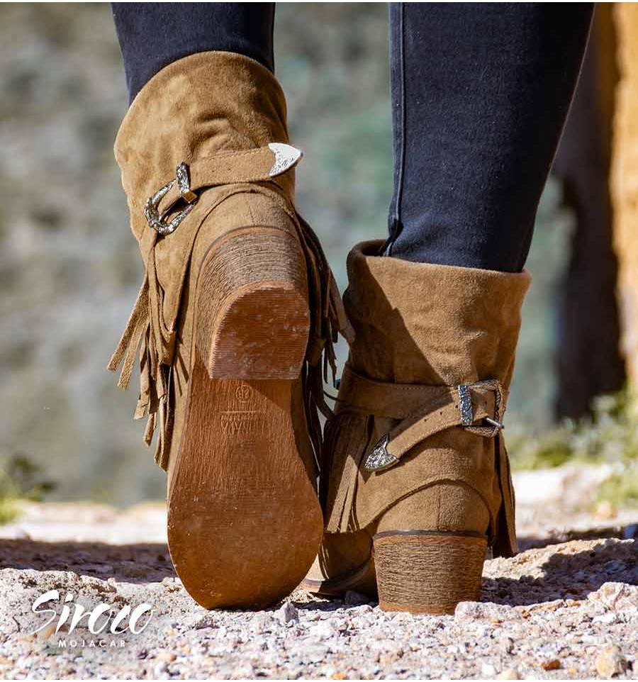 Não há design, textura ou salto que resista a botas de caubói. Não resistimos às botas do país Gibson, o que nos lembra muito da estética 'Godless'. Material simile split, alto e sem forro. Botas com franjas, fivelas e tachas. Eles dão o toque ao seu guarda-roupa.
