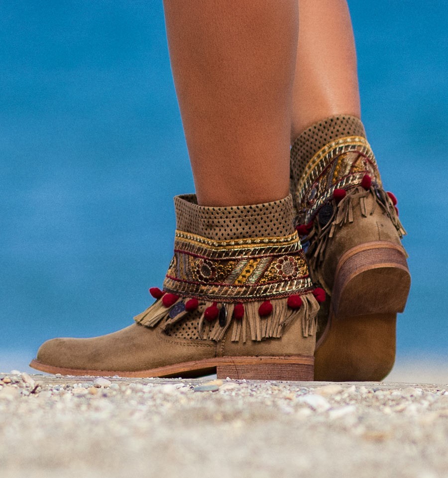Ideal these country style boots for spring-summer. The model Nacar, boho style, is a boot with a low heel and low cane, but with all the details we like: fringes, embroidery, mother-of-pearl coins. Perfect to achieve the cowboy style and daily looks ... with a lot of roll!