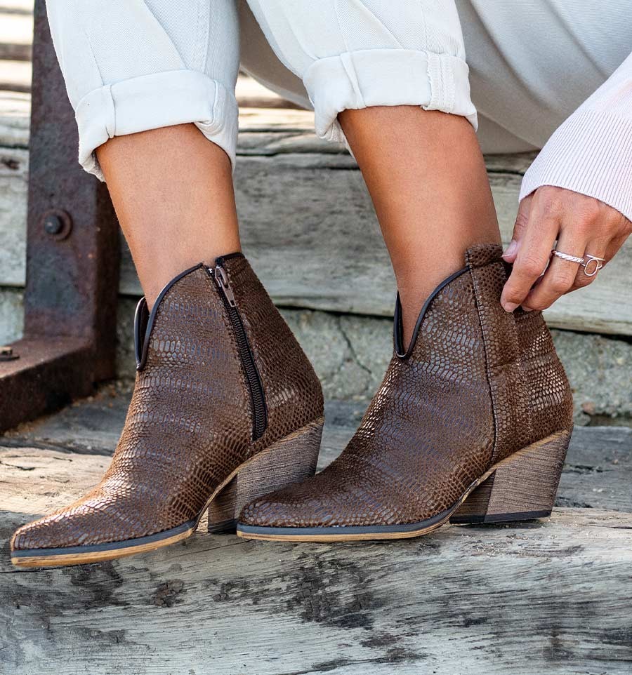 The Averna women's ankle boots made of imitation snake fabric are the ideal high-heeled bootie this fall. Its side zipper makes it comfortable and elegant, a campero ankle boot that cannot be missing in your shoe rack