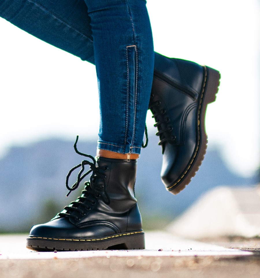 Military boots, a trend that continues to sweep this year? The Martin model is a classic! These "bikers boots", a must in your daily looks. Low-laced and comfortable black lace-up boots.
