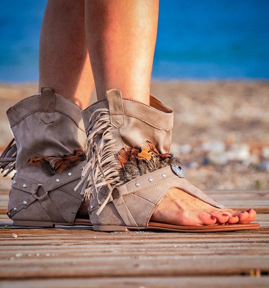 Still do not have your boots-sandals for this season? Every day we are more the ones that have joined this trend of boho style that draw attention wherever they walk. The Indo model, with details of fringes, feathers, studs and metal beads is one of our favorites.
