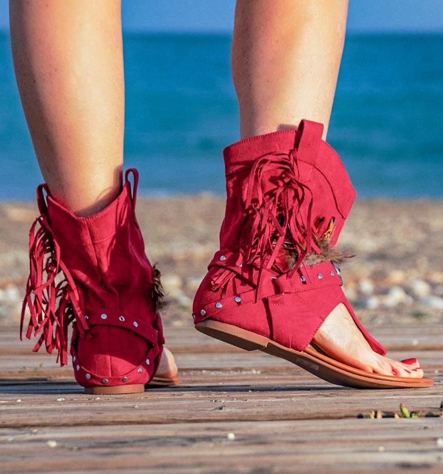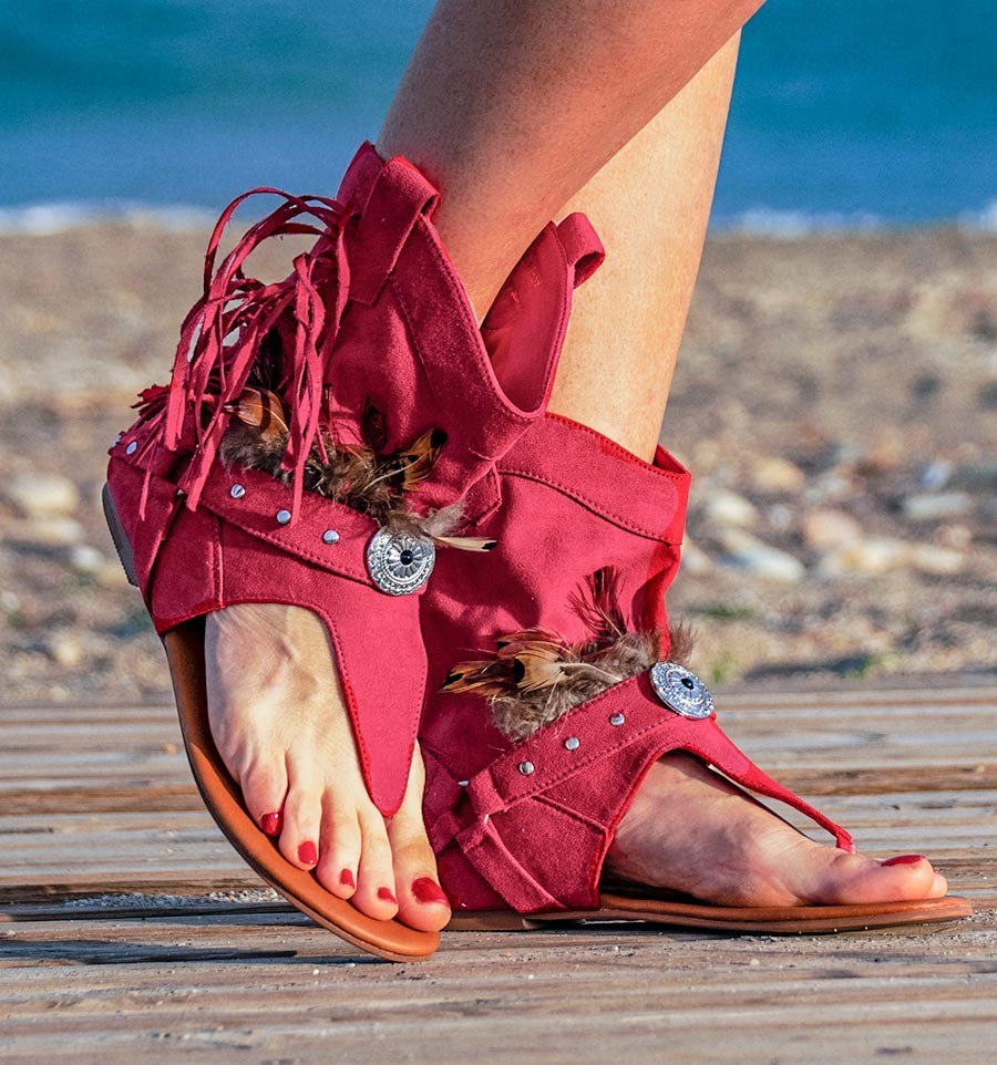 Still do not have your boots-sandals for this season? Every day we are more the ones that have joined this trend of boho style that draw attention wherever they walk. The Indo model, with details of fringes, feathers, studs and metal beads is one of our favorites.