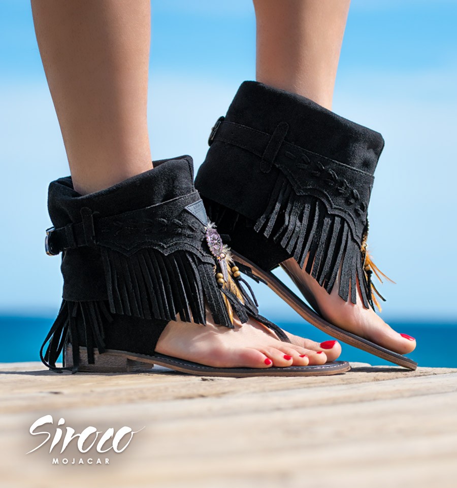 Sandals can not miss to complete a boho look. With optional embellishments: feathers, fringes ... The boots are another essential. If we join both the result can be one of our boots sandals, as the model Tarifa. You can take them with the rod folded or not. You choose!