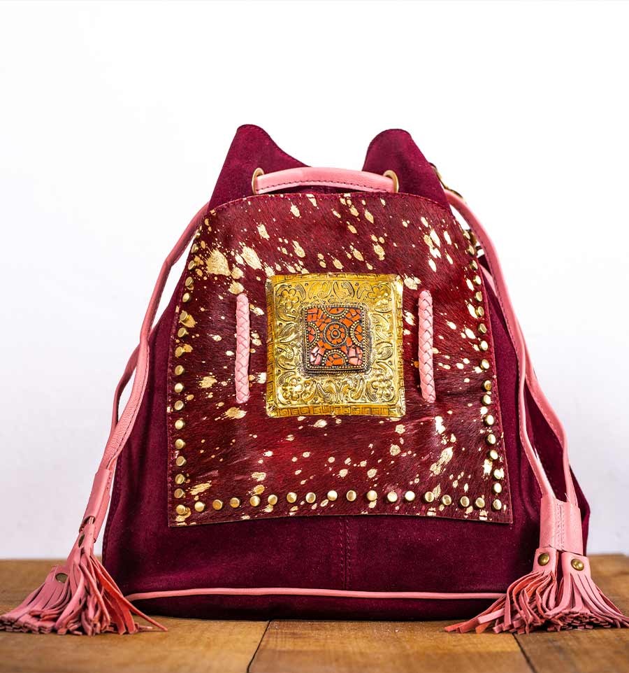 Bolsa feminina estilo balde. Bolsa artesanal com tachas e cabelo. Uma bolsa étnica, confeccionada em couro (cabelo), com estampa "animal print". Outra alternativa para completar seu look boho e dar um toque um pouco mais selvagem.