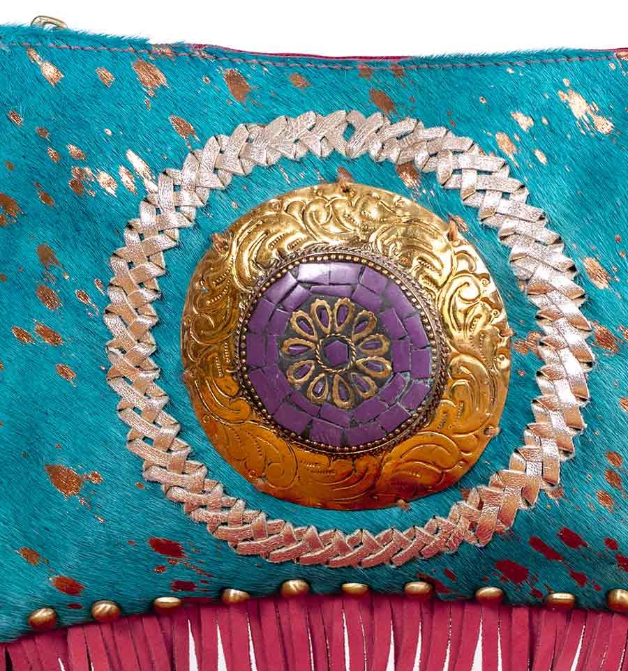 Bolsa tiracolo com franjas cor turquesa