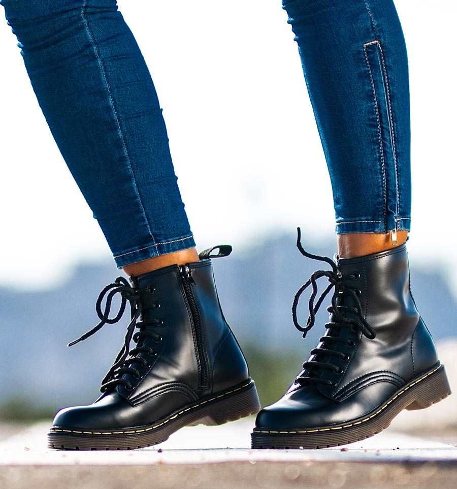 Botas militares, uma tendência que continua a varrer este ano? O modelo Martin é um clássico! Estes "botas de motoqueiros", uma obrigação em sua aparência diária. Botas pretas rendadas e confortáveis.