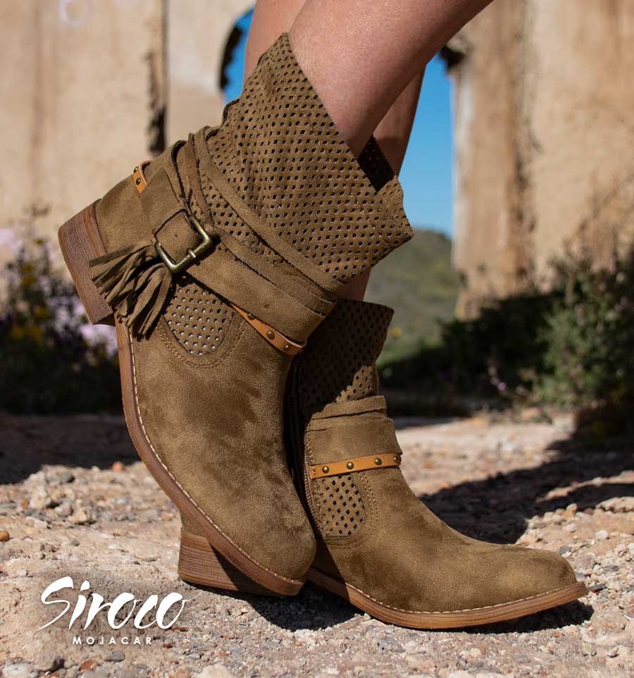 As botas estilo campero estão de volta, adaptadas à nova temporada. O modelo de Michigan é um clássico, que você pode usar todos os dias com roupas diferentes. Botas confortáveis com cana cortada e acessórios fixos: cinta com fivela, cinta com tachas e borlas.