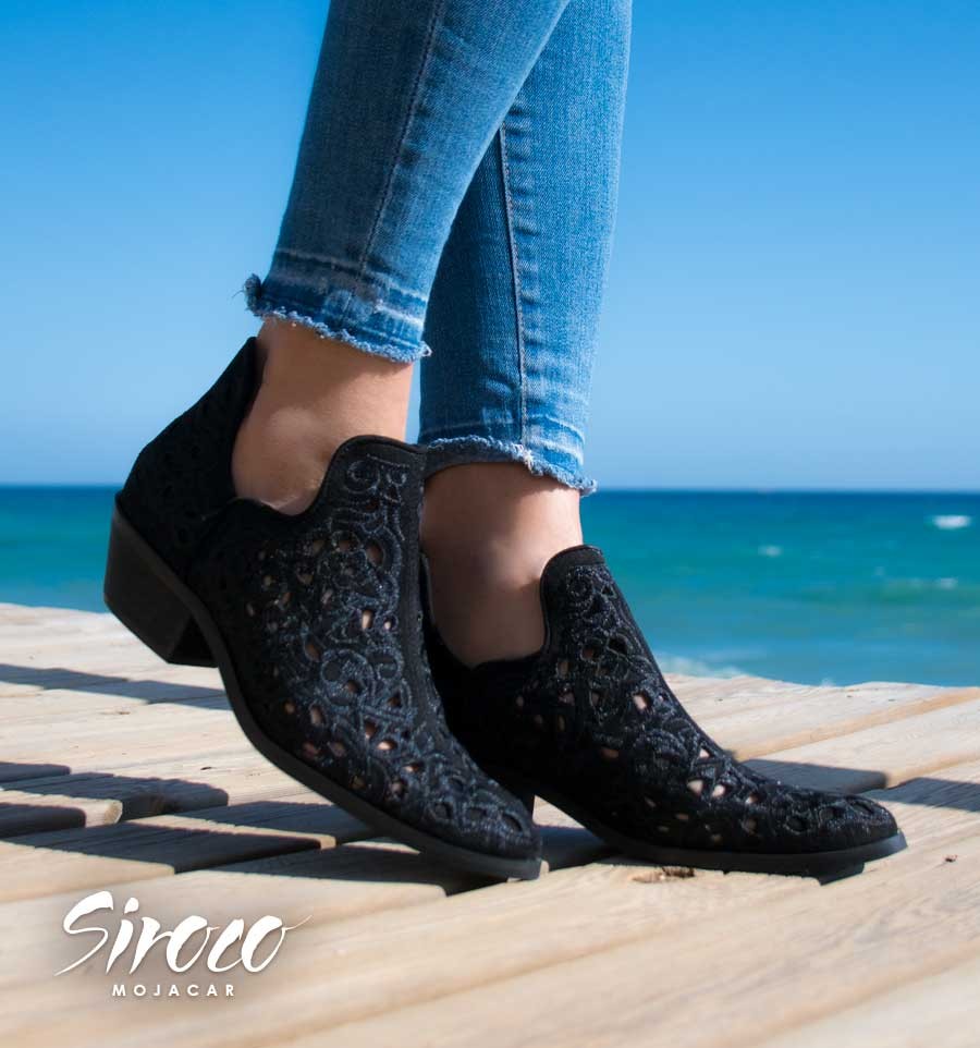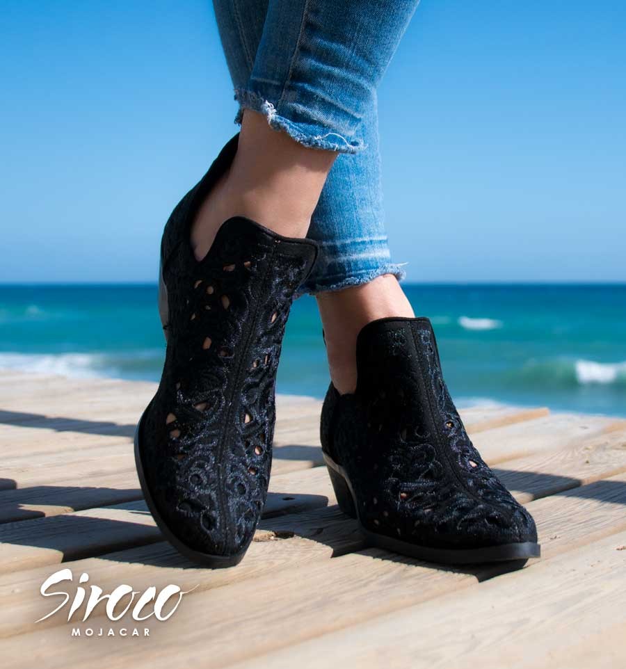 As botas das mulheres prolongam seu reinado em uma nova temporada. A renda bordada é a protagonista do modelo Kairos, sapatinhos de salto médio e, nesses meses, quando o calor o convida a recuperar os vestidos, você pode combiná-los com eles. E eles são muito confortáveis.