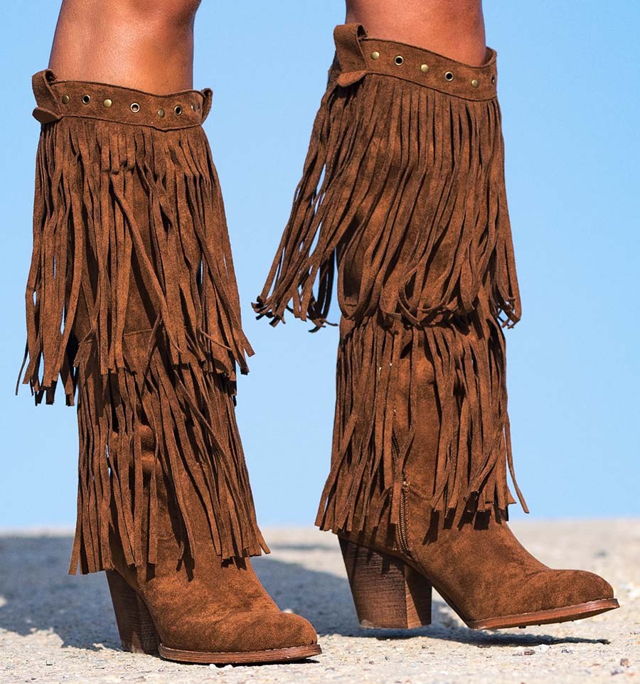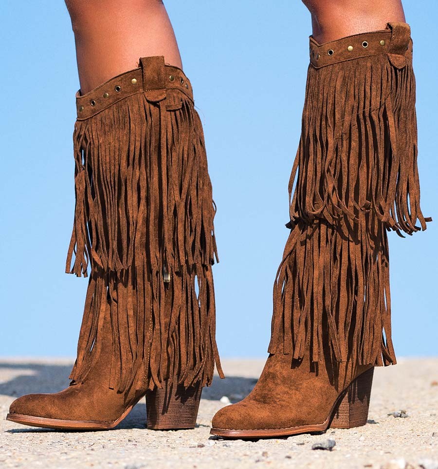 O modelo indian de salto alto, bengala alta e franjas chega devastador. Eles têm aquele toque hippie chic que gostamos tanto, sem perder o toque lisonjeiro que seu calcanhar nos oferece. As botas femininas altas são uma peça básica que é reinventada a cada outono.