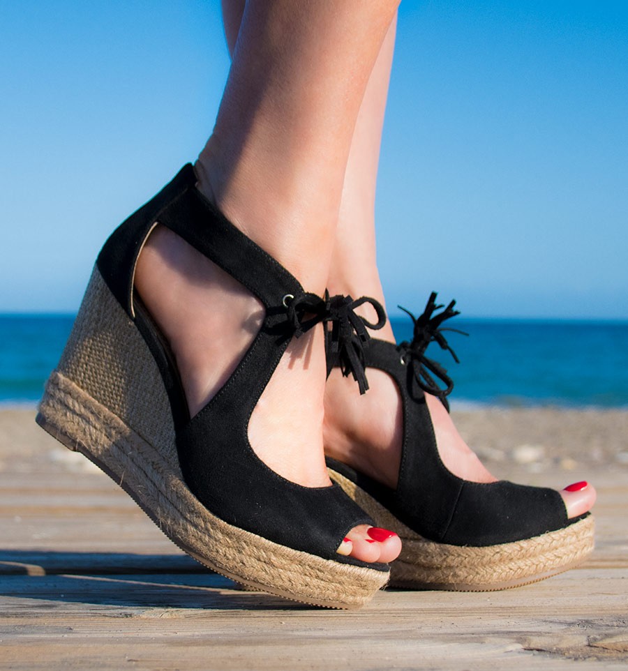 Nós gostamos de nos deleitar com as novidades que vêm a cada temporada, especialmente com sandálias de cunha esparto. Minimalista, mas muito elegante, este é o modelo de Aldara, no qual os detalhes simples predominam: como o cabo de fechamento, coberto com borlas.